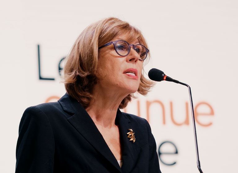 AUK president, Dr. Rawda Awwad giving the state of the university address